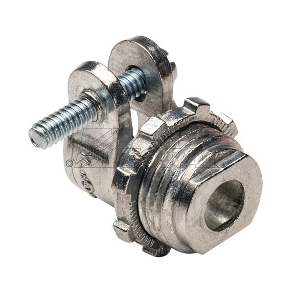 In a dry location, use to connect flexible metallic conduit and steel AC cable to a steel outlet box, load center or other metal enclosure